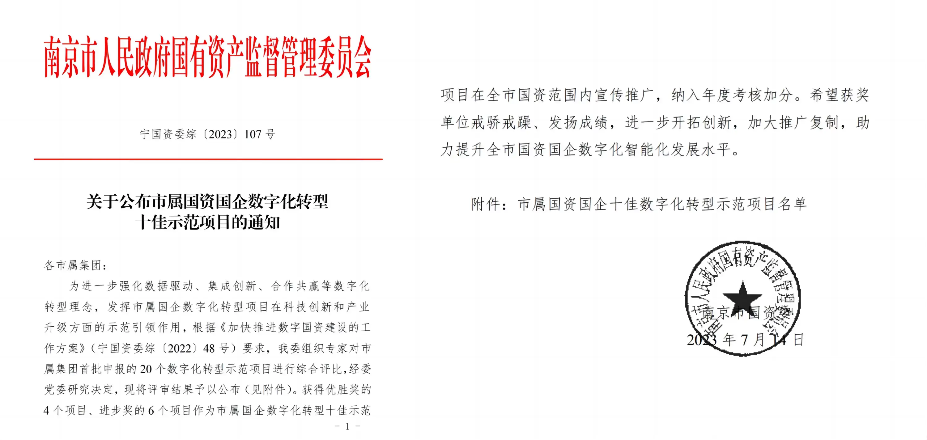 2023-07-26 1 8627月21日,南京市国资委发布通知,公布了市属国资国企数字化转型十佳示范项目。南京体育产业集团旗下南京紫金体育产业股份有限公司主导实施的5G 运动场地“云享动”项目荣获进步奖,即为该次评选中的二等奖项。该项目将作为市属国企数字化转型十佳示范项目在全市国资范围内宣传推广,并纳入年度考核加分。