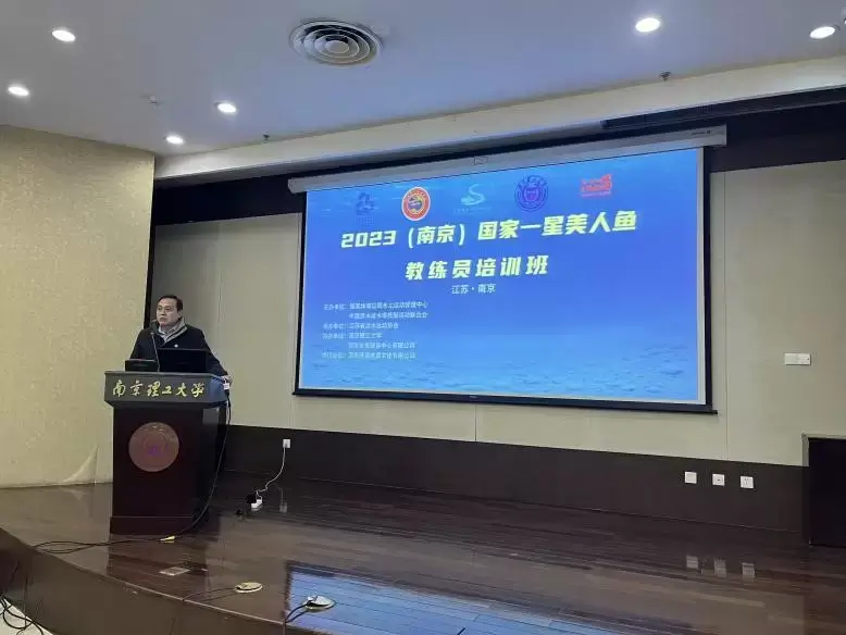 培训现场,国家体育总局水上运动管理中心三部部长刘青女士上台致辞,她首先对全民公司在游泳馆标准化管理、设备设施焕新、特色游泳校本课等方面作出的努力予以充分肯定,并表扬了南京理工大学游泳馆的场馆设施及后勤保障工作。同时她强调国家一星美人鱼教练员培训班的开展对推动我国美人鱼潜水项目的规范发展、建立健全国家美人鱼教学培训课程、培养国家美人鱼教练员都具有重大意义,将为国家美人鱼运动员训练提供更科学的指导。