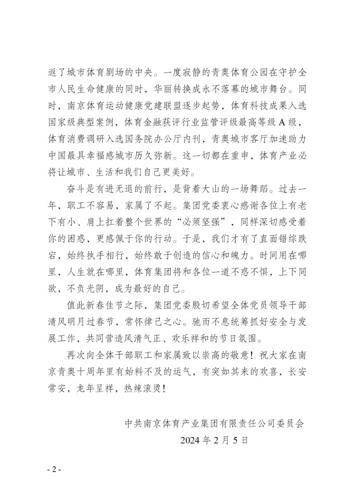 保持热爱 并肩奔赴下一个山海——体育集团党委致全体职工的一封信
