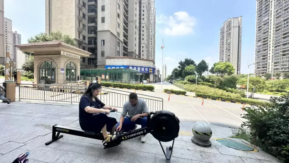 本次活动为社区居民准备了赛艇测功仪体验及体育与健康知识科普等内容,50余位居民参与其中。整个过程趣味盎然,大家习练认真,动作从一开始的手忙脚乱到逐渐规范,汗水、笑声充满了整个社区。