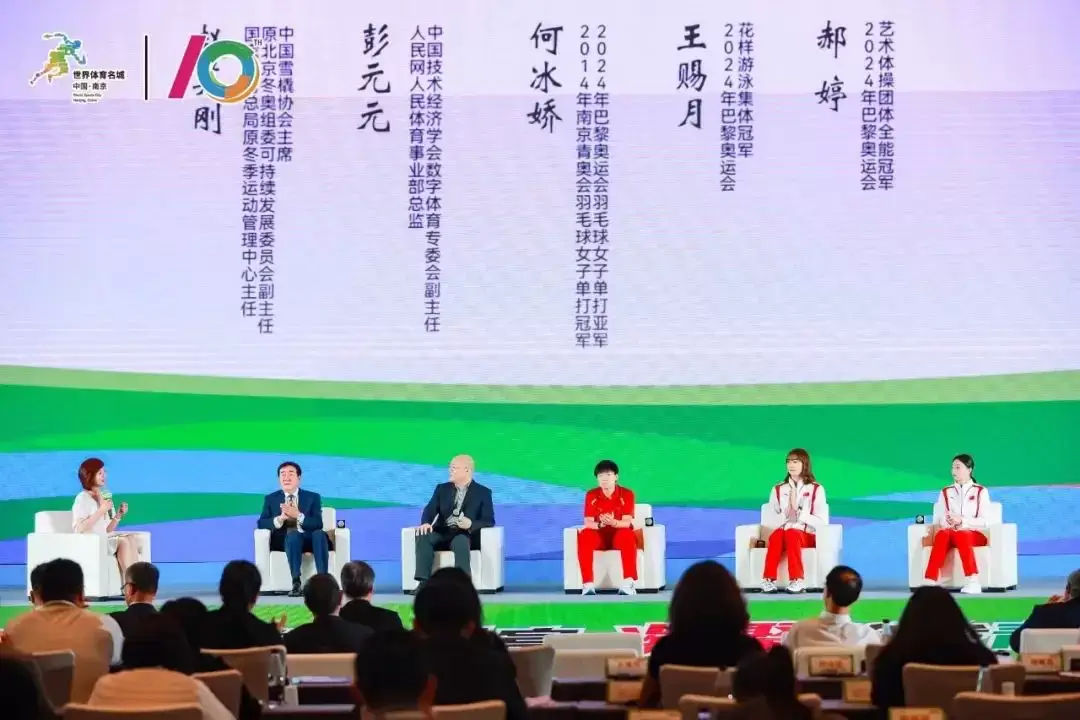 国家体育总局原冬季运动管理中心主任、中国雪橇协会主席、原北京冬奥组委可持续发展委员会副主任赵英刚,人民网人民体育事业部总监、中国技术经济学会数字体育专委会副主任彭元元,以及2014年南京青奥会羽毛球女子单打冠军、2024年巴黎奥运会羽毛球女子单打亚军何冰娇,2024年巴黎奥运会花样游泳集体冠军王赐月,2024年巴黎奥运会艺术体操团体全能冠军郝婷围绕“利用放大青奥品牌——奥运之城南京如何持续发挥积极影响”议题展开了热烈的讨论,不约而同表达了对南京浓厚的体育文化氛围的喜爱。