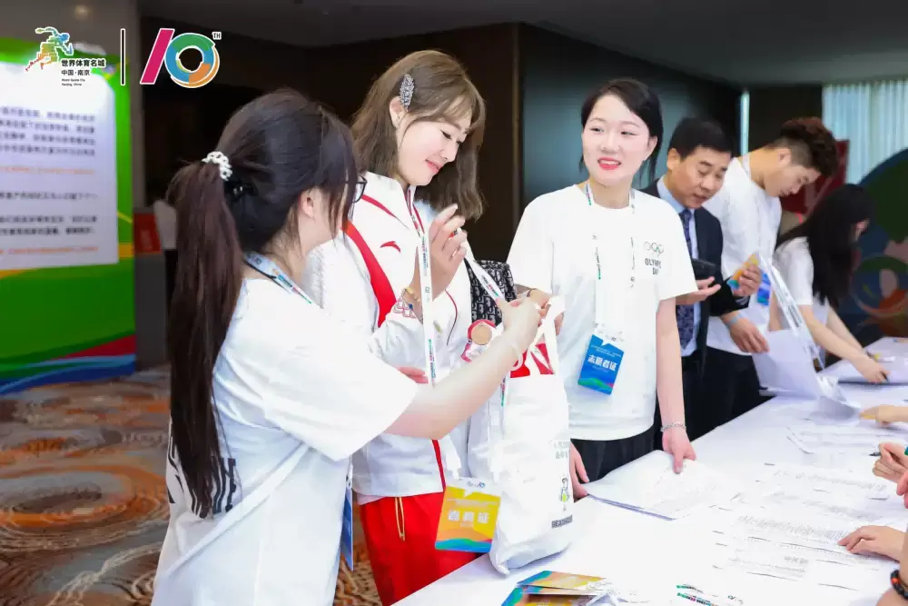 来自希腊、阿根廷、法国、德国、英国、巴基斯坦、新加坡等世界各地的国际体育组织、奥运城市、国内外高校、企业界、行业专家代表等近300名嘉宾齐聚南京,其中阿根廷奥委会第一副主席艾丽西亚·莫雷亚乘坐40个小时的飞机从22000公里外的布宜诺斯艾利斯奔赴这场跨越十年的城市之约,最远的距离见证了我们之间最深的情谊。