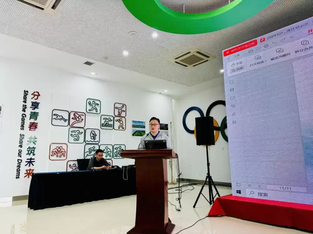 本次培训会议特聘请江苏省社科院区域现代化研究院副院长,江苏省体育产业协同创新中心专家委员会委员,江苏省体育产业研究院专家委员会委员丁宏为大家进行关于发展体育新质生产力方面的培训。培训会上,丁宏教授指出发展体育新质生产力是新质生产力在体育领域的实际应用,是与中国式现代化进程相呼应,解决体育事业发展过程中的堵点、难点;并强调推动体育事业高质量发展的必由之路,是深入贯彻落实习近平总书记关于体育重要论述的内在要求与时代使命。