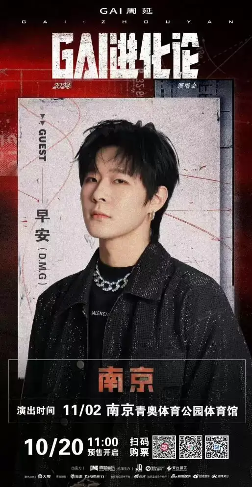 GAI的歌曲,总是能够直击人心,他的每一句歌词都仿佛是在讲述一个关于成长、奋斗与梦想的故事。他的音乐作品,如《火锅底料》《沧海一声笑》等,不仅融合了传统与现代,更展现了深厚的文化底蕴和时代感,让中文说唱在国际舞台上大放异彩。在《GAI进化论》演唱会上,GAI将带来一系列经典老歌的全新演绎,以及《底层逻辑》全专的完整首唱,点燃观众热情,共同经历一场心灵的洗礼。此次南京站演唱会还“官宣”将迎来超燃嘉宾早安、贰万的炸裂助演,为演唱会狂加“热力值”。
