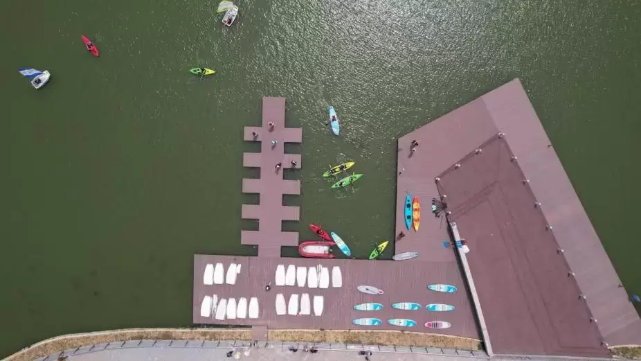 青奥水上运动中心·卧龙湖基地背倚4000亩卧龙山景及3000亩卧龙湖水域湖泊,项目包含皮划艇、桨板、动力冲浪板等水上运动及相关配套服务,集运动休闲、度假、娱乐等多功能为一体,宛如一颗隐匿于山水之间的璀璨明珠,为人们提供了一个远离喧嚣、尽情享受水上运动乐趣与自然宁静的世外桃源,是度假商旅的理想之所。
