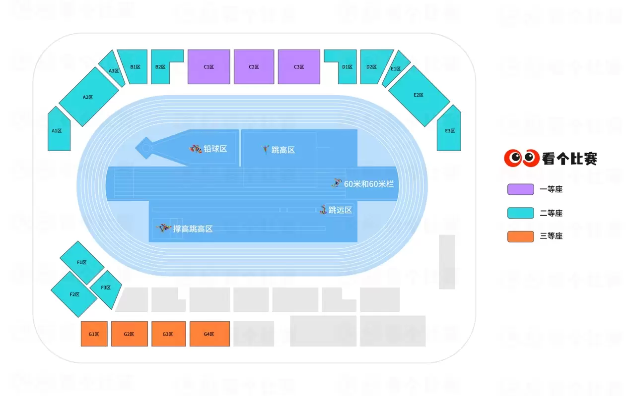 为满足观众多样化购票需求,本次赛事通过官方网站(www.worldathleticsnanjing25.cn)、“看个比赛”微信/支付宝小程序、“看个比赛”APP以及抖音搜索“2025南京世界田联室内锦标赛”等渠道售票。后续组委会还将开通线下购票渠道。门票采取“实时销售、先到先得、一票一证、实名购票”的销售政策,按照赛程安排,面向大众销售赛事期间3天共6场次的赛事门票,分别为日场和晚场。具体包括60米、400米、跳高、跳远、撑竿跳高、铅球、男/女子全能等总计26个比赛项目。