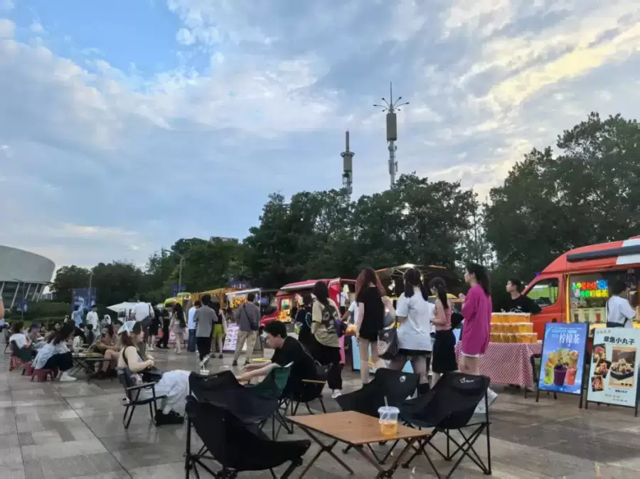 梦之蓝青奥体育公园作为“青年城市会客厅”,今夜再度印证其强大吸引力。数据显示,00后乐迷以超55%的占比成为绝对主力,90-00群体亦近40%,青春气息席卷全场。更令人惊叹的是,高达75%的观众跨城而来,上演了一场激情澎湃的“文体旅融合”行动。恰如当日“苏超”赛场南京球迷高铁专列奔赴淮安,以一场1:1的比分续写“宁淮一家亲”的佳话,MC法老演唱会同样点燃了跨城观演的热潮,链接着热爱,带动了南京文旅消费的蓬勃脉动。演出开始前,月牙广场早已升腾起满满的烟火气,精心布置的潮流餐车市集人头攒动,将等待的时光化为一场味蕾与社交的预热狂欢。