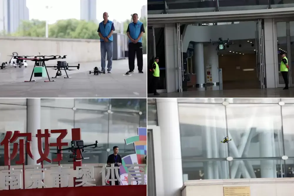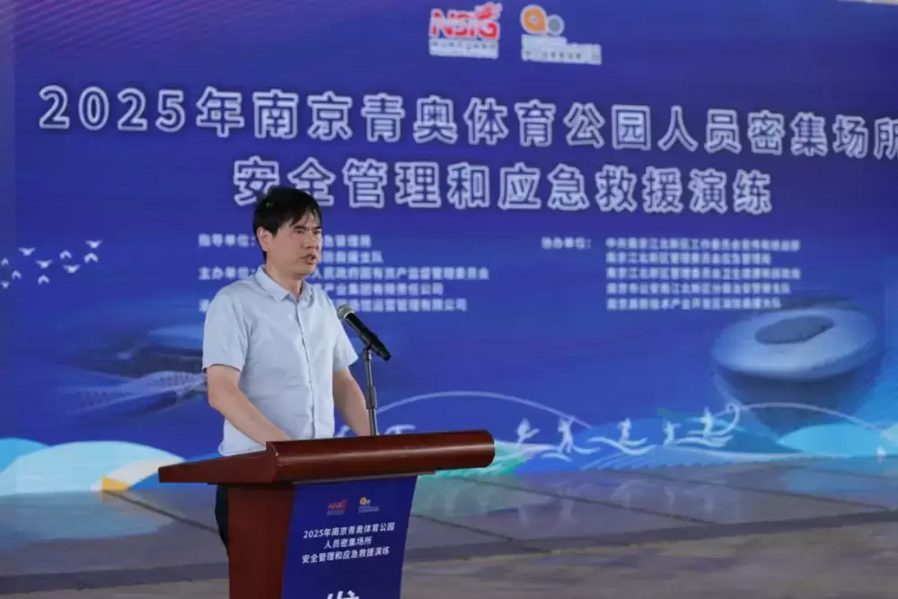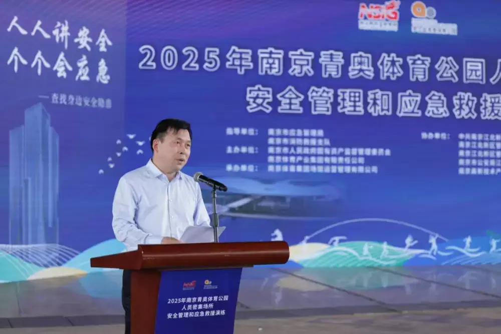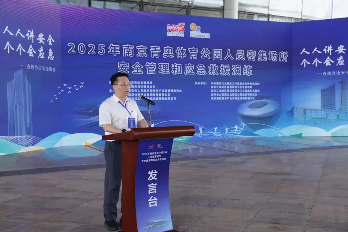 2025-06-18 4302025年6月18日下午,一场以“科技赋能、平战结合”为主题的人员密集场所安全管理和应急救援演练在南京青奥体育公园震撼上演。本次演练由南京市应急管理局、南京市消防救援支队指导,南京市国资委、南京体育产业集团联合主办,南京体育集团场馆运营管理有限公司承办,演练聚焦人员密集场所全流程安全管理与突发事件应急处置,全面检验多部门协同作战能力与无人机等科技装备在应急救援中的实战效能。