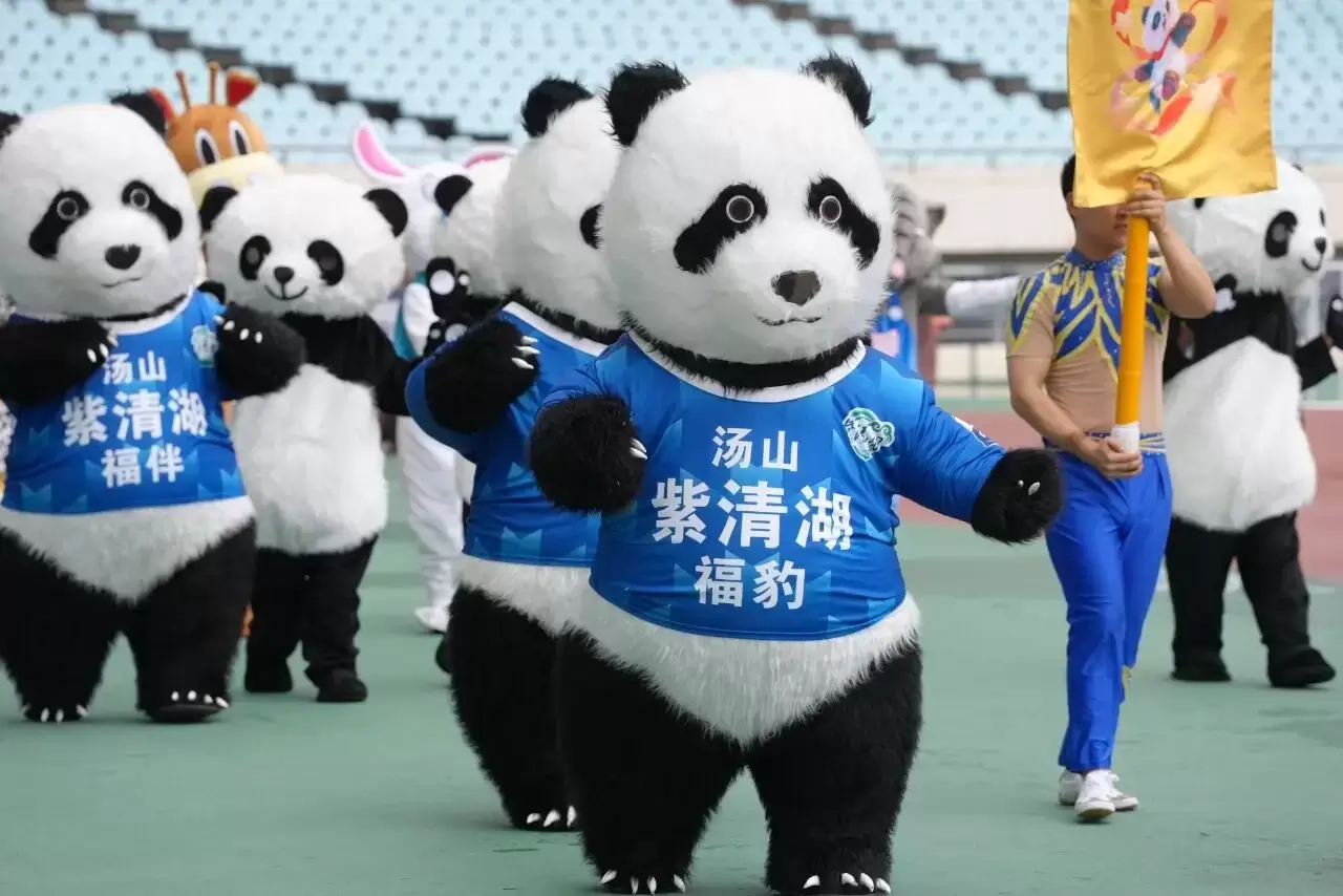 AQ的“鸭子大队”浩浩荡荡地穿过广场,仿佛在预演胜利后的游行。不过紫清湖的六只“国宝大熊猫”玩偶更抓眼球,又是跳霹雳舞,又是和球迷踢球,还原了景区真身的社牛属性,才艺之多让人难以想象,其中名叫“暖暖”的那只,曾因不会剥笋而在网上走红。