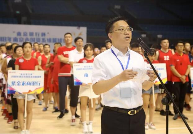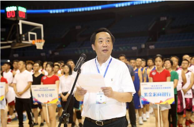 南京市总工会副主席焦勇在开幕式上致辞,他指出,这是我市国资系统文化生活中的一件盛事,也是广大支持体育、热爱篮球同志们期盼已久的一件喜事,希望通过这次比赛,进一步推动我市国资系统全民健身运动的开展和两个文明建设持续、健康、和谐发展。运动员代表来自南京银行篮球队的陶醉和裁判员代表邱治国上台宣誓。南京体育产业集团党委书记、董事长章小奇讲话。他指出,体育集团正在积极探索国有平台统筹承办城市重大赛事的模式创新,以便更好承担起南京重大体育赛事的运营主体、体育资源优化配置的执行主体和产业融合发展的承载主体的重大责任。希望通过我们的场馆资源和品牌赛事活动,为国资系统及各行各业提供最佳的赛事活动服务和体育运动体验,在国资文化建设中贡献更大力量。