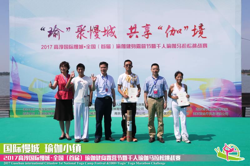 随后,“2017高淳国际慢城.全国(首届)瑜伽健身露营节暨千人瑜伽马拉松挑战赛”颁奖典礼隆重举行。江苏省卫计委副主任、江苏省瑜伽运动协会会长徐东红,江苏省广场舞协会会长贺珍珠,江苏省体育总会秘书长李一冰,南京体育产业集团董事长、党委书记、市体育产业联合会会长章小奇,高淳区委副书记黄亦武,高淳区副区长袁建华等出席了本次千人瑜伽马拉松挑战赛颁奖典礼。此外在现场的还有各主办、承办、合作单位、全体志愿者及高淳区相关部门工作团队、中央及省市新闻媒体。