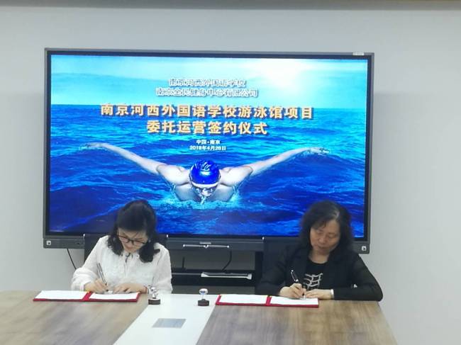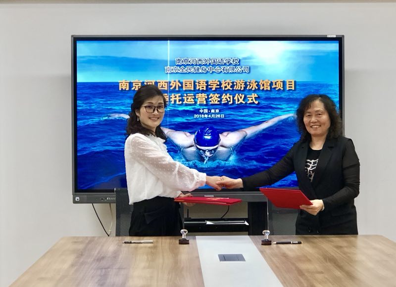 4月26日下午,随着南京全民健身中心有限公司总经理高梅、南京河西外国语学校副校长东群共同落笔签字盖章,全民健身中心河西外校游泳馆项目委托运营项目正式确立。至此,继南京全民健身中心、好街坊“青蛙跳”蹦床乐园、龙江国际网球中心、鼓楼社区体育中心之后,体育产业集团所属全民健身品牌连锁场馆已增至5家。这也是南京体育产业集团全面贯彻国家体育总局赵勇副局长4月20日在“2018年全国群众体育工作电视电话会议”讲话精神的具体体现。赵勇同志在会上提出“深入推进‘六个身边’工程”。南京市人均体育设施面积在全省位居前列。但存在中央和省驻宁机构、企事业单位、教育机构体育设施和设备体育大量闲置的问题。进一步盘活这方面资源,使之真正为民所用,提升市民满意度和幸福感,是体育产业集团始终在研究和探索的一个课题。