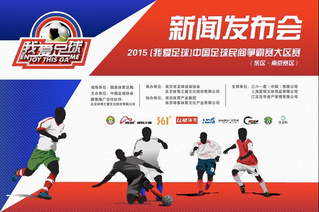 10月21日,由南京市足球运动协会和北京体育之窗文化股份有限公司承办、南京体育产业集团协办的2015年“我爱足球”中国足球民间争霸赛东区大区赛决赛在南京打响。来自江苏省、上海市、江西省、山东省、浙江省、安徽省、河南省、福建省等8个省市共计500名运动员和40名裁判员的32支球队参加本次决赛。该赛事由中国足协主办,联合全国32个省、自治区、直辖市、新疆建设兵团共同打造,含11人制、5人制两个组别,其中5人制又分别有娃娃组、青少年组、社会组3个年龄段,是一场针对全国草根足球爱好者以全民健身、以球会友为特色的大型足球民间赛事。继2014年“谁是球王”中国足球民间争霸赛后,中国足协将民间足球赛事全面升级,于2015年5月正式开启“我爱足球”中国足球民间争霸赛。经过5个月的激烈角逐,各地区都产生了三个年龄段的5人制优胜队和一支11人制的冠军代表队,他们将代表自己的城市征战在南京、泸西、武汉、天津举行的东、南、西、北四个大区赛的决赛。
