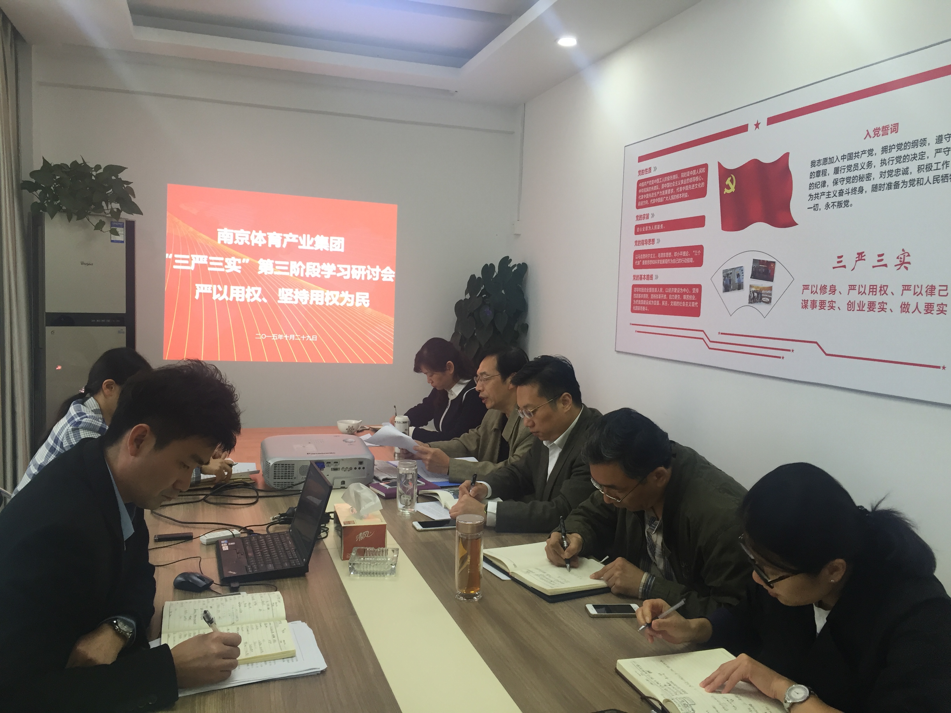 根据市委统一部署和集团“三严三实”专题教育安排,近日,南京体育产业集团董事长、党委书记章小奇主持召开了 “三严三实”——“严以用权”第三专题学习研讨会,重点围绕“坚持用权为民、看一看是否做到秉公用权、权钱交易、以权谋私,侵吞国有资产、插手工程建设和土地出让”等问题谈学习体会,并修改完善个人问题清单。集团领导班子成员和部门中层干部参加了学习研讨会。学习研讨会上,集团监事会主席、纪委书记张金发首先代表集团纪委传达近期中央、省市纪委关于纪检监察、党风廉政建设等相关文件精神 。随后,集团领导班子成员、中层干部结合个人思想、工作、生活和作风实际分别作了重点发言和补充发言。有的同志认为,必须重视道德感化的底线意识,增强用权的责任意识,强化纪检监察的监督作用;有的同志以周恩来同志典型案例进行剖析,坚持把权力关进制度的笼子里,按规则、按制度行使权力;有的同志表示,坚持严以用权,应做到权为民所用,任何时候都不搞特权、不以权谋私。