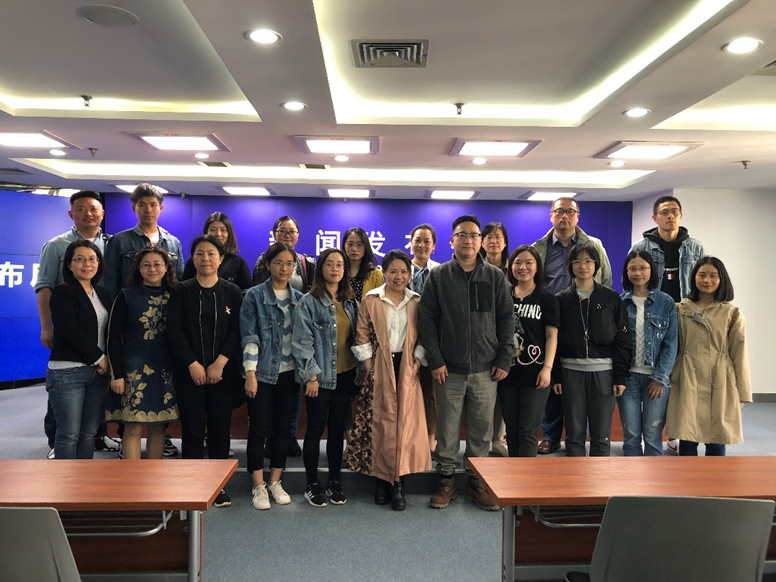 2019-05-9 5 371为在媒体融合发展背景下充分利用好新媒体,加强集团信息员队伍建设,进一步讲好体育集团故事,弘扬正能量,建树企业品牌,提升集团形象,形成集团宣传合力,5月8日下午,王鹏副总经理带领集团各部门、下属子企业信息宣传工作分管负责人及信息员一行20人,专程赴龙虎网开展新媒体应用学习交流活动。