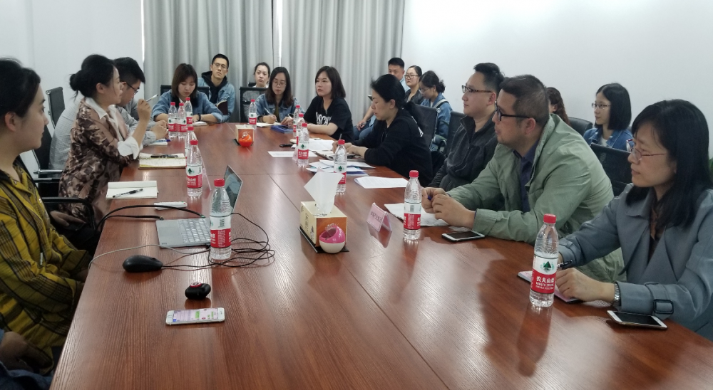 龙虎网朱妮总经理及各主要职能技术部门负责人接待了体育集团一行,带领大家参观了龙虎网演播厅和南京市新闻发布厅,直观感受新闻发布会网络直播的现场氛围。在随后的座谈交流会上,朱妮总经理介绍了龙虎网总体情况,各部门负责人围绕新媒体应用的视频、图片、设计、手绘、动画、直播、舆情监测、技术运维、活动营销等产品类别,进行了生动翔实的讲解交流和案例分享,让体育集团信息员们大开眼界,对媒体融合发展背景下新媒体的传播价值及信息精准传播的影响力有了更进一步的认识。