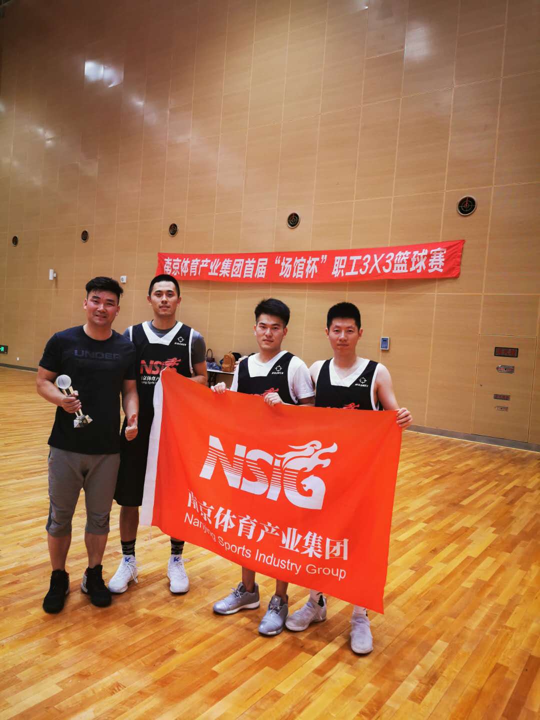 2019-05-27 13 403为丰富集团职工的业余文化生活,提振员工士气,增强企业凝聚力和员工的自豪感,集团工会于5月24日下午,在青奥体育公园训练馆举行了南京体育产业集团首届“场馆杯”职工3X3篮球赛。来自各基层工会的6支队伍共31名职工参加了本次比赛。