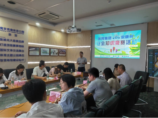 2019-07-22 6 1917月19日上午,体育集团于青奥体育公园中央控制平台会议室举办了2019年 “安康杯”安全知识竞赛。本次共有集团本部、全民公司、场馆公司、青奥公司、紫金公司、龙江公司六支队伍组队参赛,参赛人员包含了集团本部、各子公司安全工作人员、其他岗位员工以及外聘物业人员。