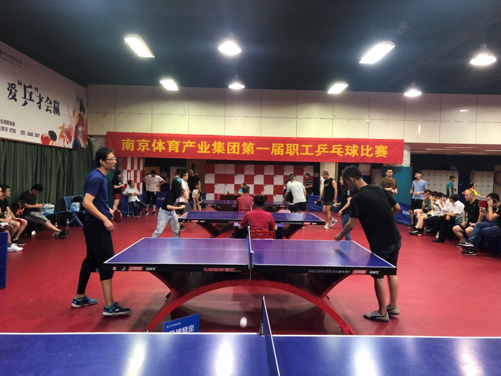 为深入开展全民健身活动,展现南京体育集团职工健康向上的精神风貌,增强企业凝聚力和员工的自豪感,集团工会于7月26日下午,在南京全民健身中心二楼乒乓馆举行了南京体育产业集团首届职工乒乓球比赛。来自各基层工会的6支队伍共22名职工参加了本次比赛。集团公司党委副书记王虹燕来到现场观看比赛,鼓励参赛选手赛出风格、赛出水平。
