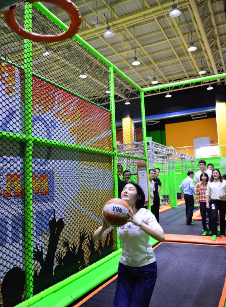 活动上半场是“学习强国”主题知识竞赛,围绕“学习强国”平台每日答题、每周答题、专项答题、挑战答题等应知应会基本知识,分必答、抢答两种类型进行现场答题比赛。全体选手分四组参赛,个个精神饱满、斗志昂扬,面对主持人提问沉着应对,既体现个人风采,又展现出团队合作精神,进一步检验了两家单位开展“学习强国”的真实效果。活动下半场是蹦床竞技对抗团建拓展,四组选手分别组成对抗团队,进行“躲避球大战”、“狭路相逢”、“灌篮高手”等项目。各组成员激情参与,密切配合,齐心合力,最后的加分项目“勇者滑梯”更激发了大家克服困难的勇气和不甘落后的竞争意识。最终,根据上、下半场得分积累,两组选手分获一、二名。