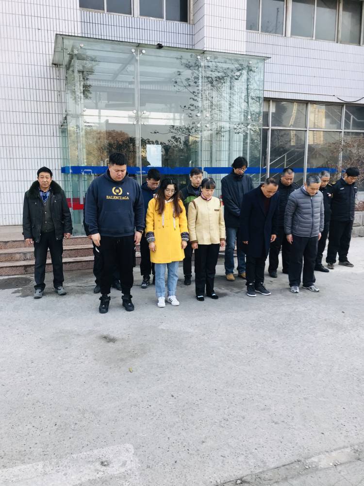 当日,随着防空警报声响彻南京上空,南京体育产业集团近百名员工在不同地点身着素装,向南京大屠杀死难者默哀,随后又集体诵读《和平宣言》。