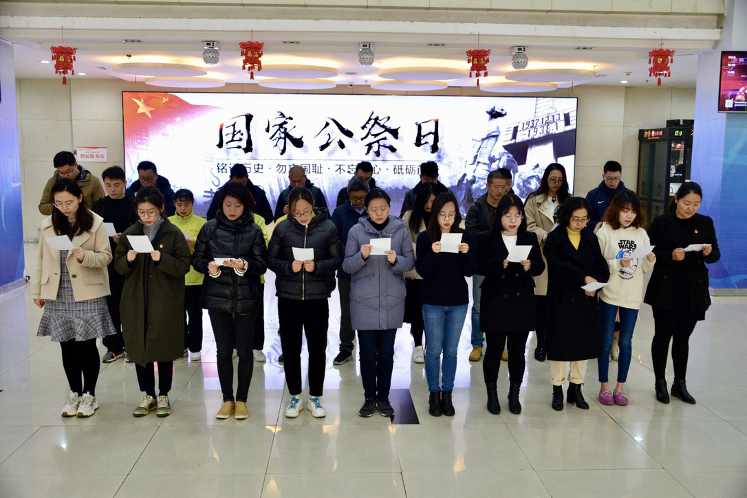 2019-12-17 5 26312月13日,第六个南京大屠杀死难者国家公祭日,防空警报再次在南京拉响。铭记历史、追思同胞,是一种历史责任,也是一种前行力量。南京体育产业集团在各办公区、全民健身连锁网点举行公祭日主题纪念活动。