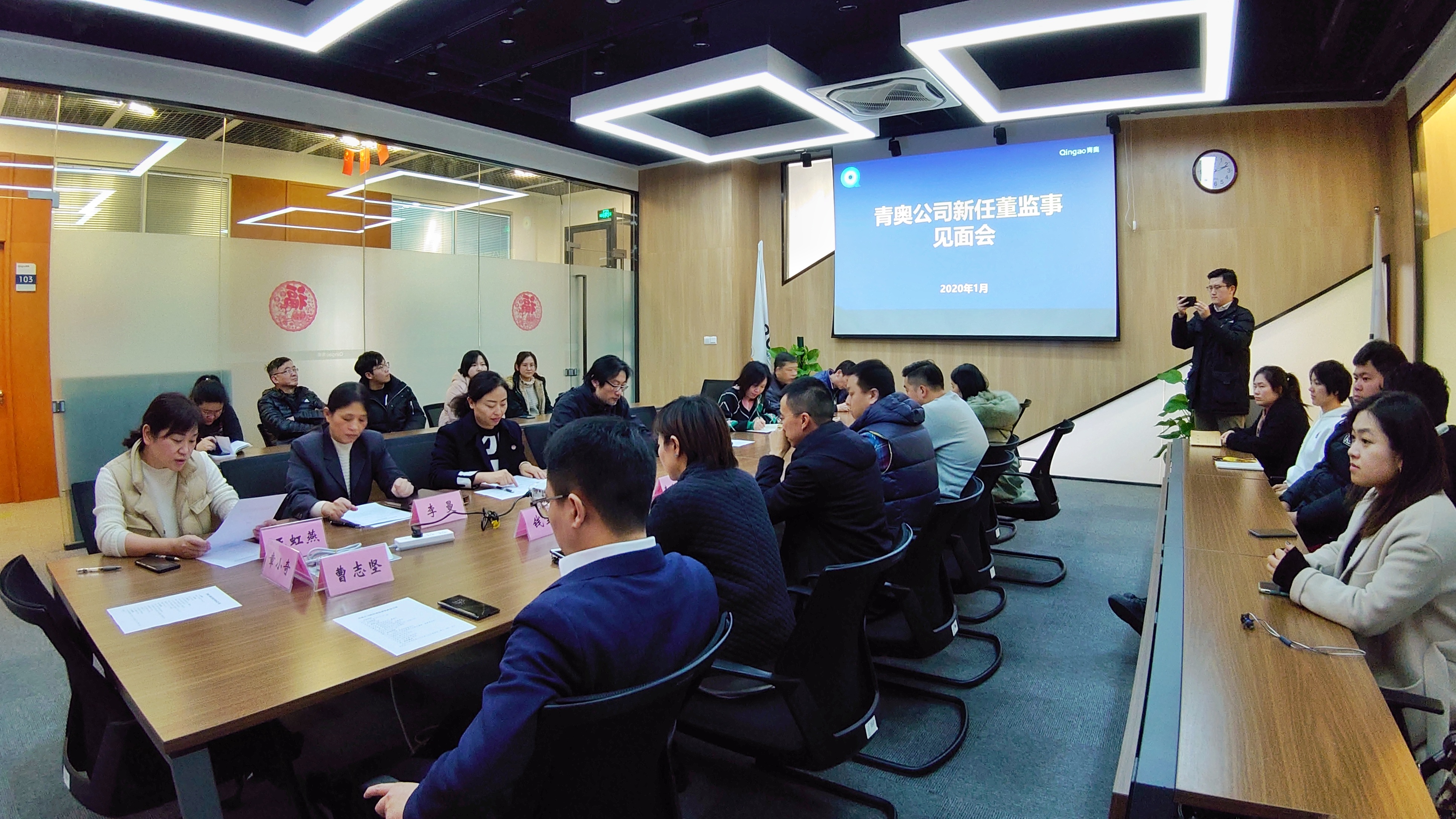2020年1月20日下午,青奥公司在会议室召开新任董监事见面会。体育集团党委副书记王虹燕,集团副总经理、党委委员曹志坚出席会议,集团党群工作及人力资源部、资产部、监督办相关同志和青奥公司全体员工参加会议。