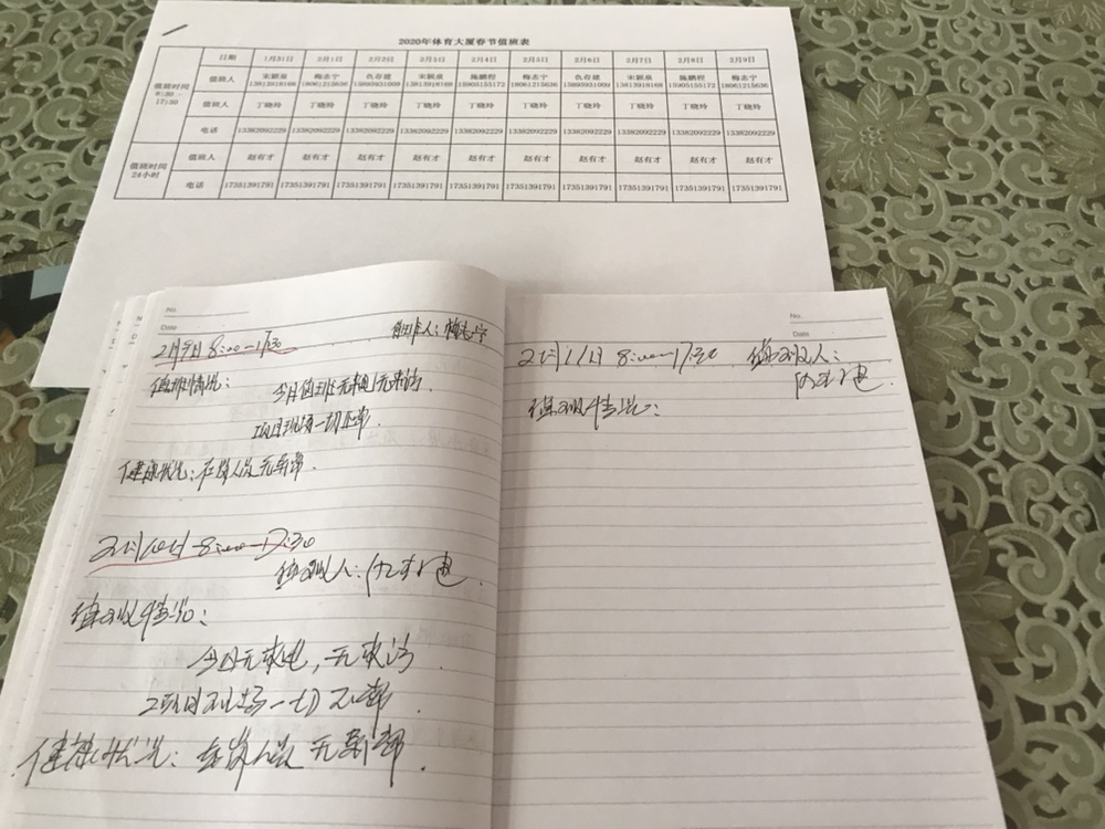 滕岷军书记认真听取了值班人员的汇报,仔细检查了值班情况记录、室内消毒、防护用品的配备、来访人员登记、来访人员体温测量等工作内容。体育大厦值班人员及时做好值班记录,严格执行来访登记的规定,做好来访人员出入登记、测量体温工作,禁止体温异常人员入内,确保疫情防控工作万无一失。