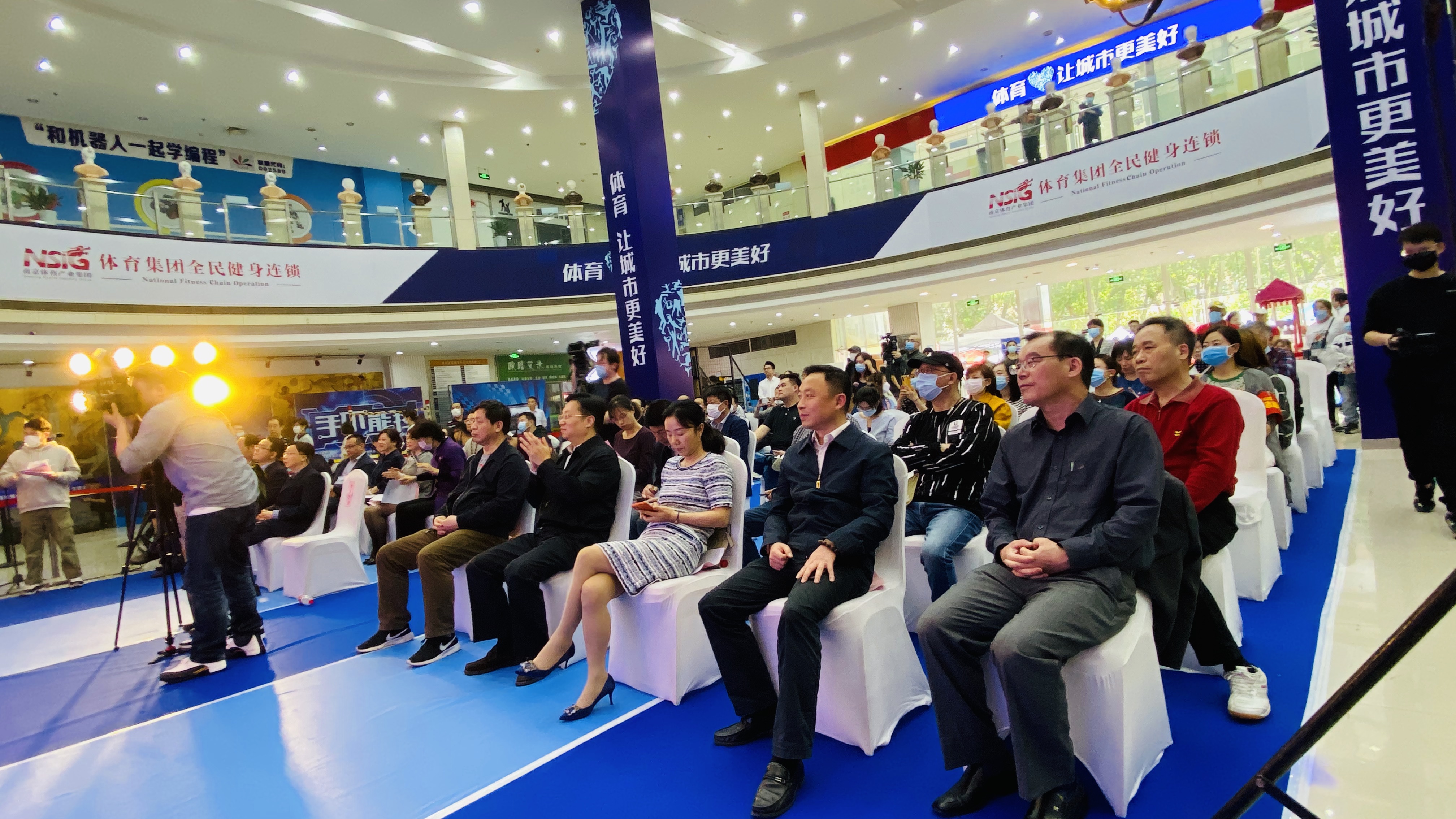 4月30日下午,主题为“体育,让城市更美好”的体育消费节启动仪式在南京全民健身中心举行,江苏省体育局副局长王志光,江苏省体育总会秘书长李一冰,南京市总工会党组书记、常务副主席孙强,南京体育产业集团党委书记、董事长章小奇,玄武区人民政府副区长马千山,南京市文旅局党委副书记、副局长徐莉莉,南京市卫健委副主任丁小平,南京市体育局副局长费佳伟,南京广播电视集团党委委员、副台长谢海翔,南京市国资委一级调研员王开平,南京体育产业集团总经理、党委副书记程向阳,以及南京鼓楼医院、玄武区相关部门、体育产业联合会相关单位领导出席启动仪式,共同助力南京体育产业企业复工复产,营造体育消费氛围,刺激市民消费需求,倡导全民健身理念。