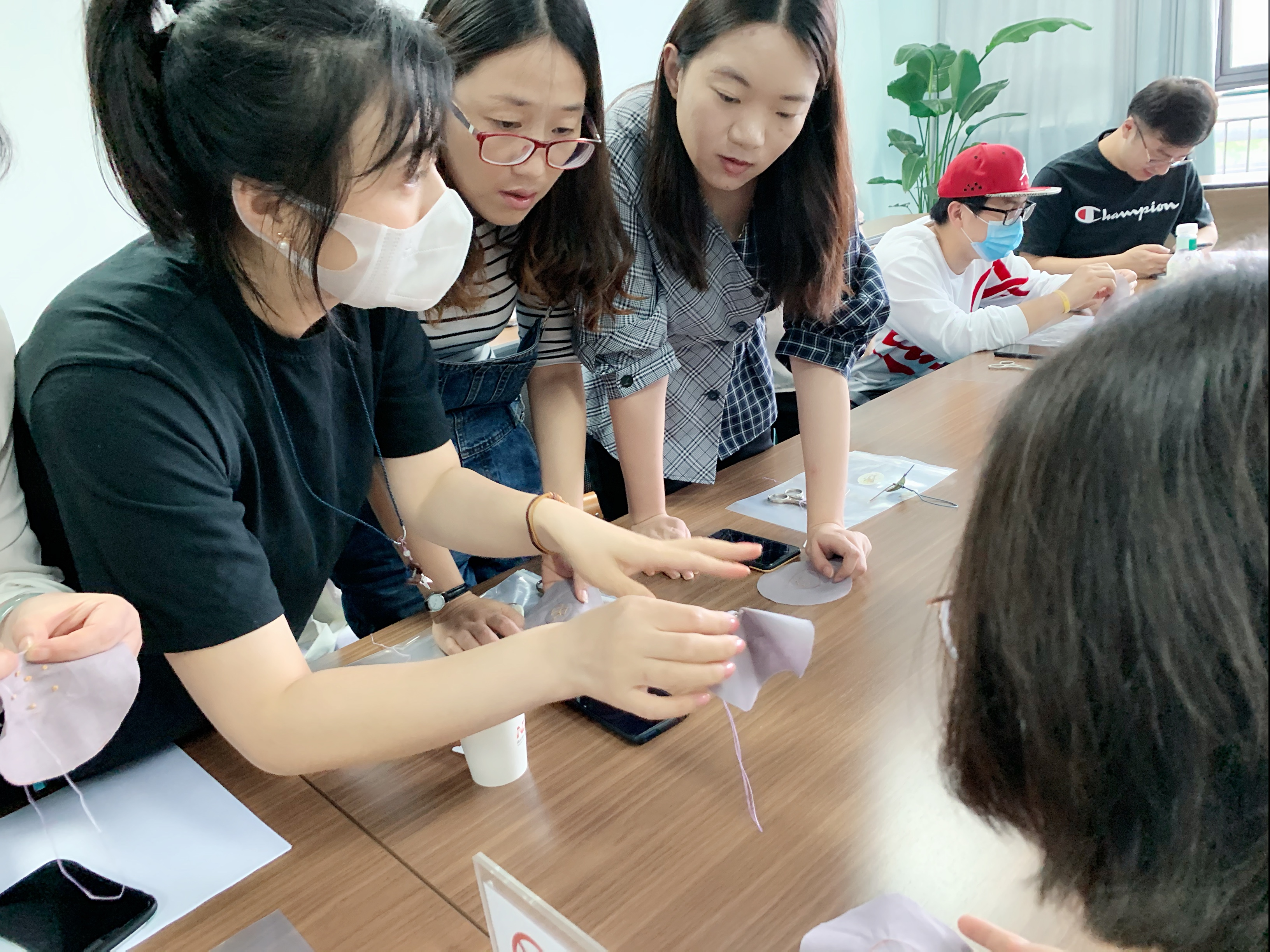 现场其乐融融,制作的过程中,大家相互探讨,忙得不亦乐乎!