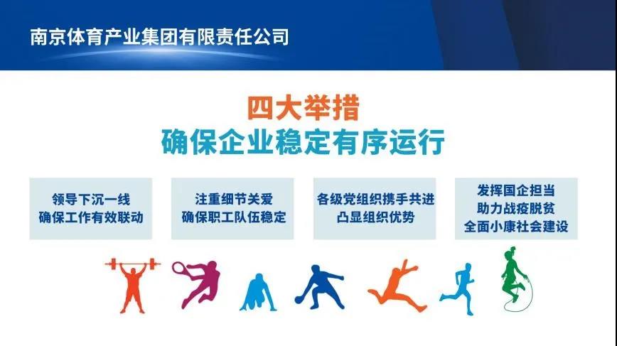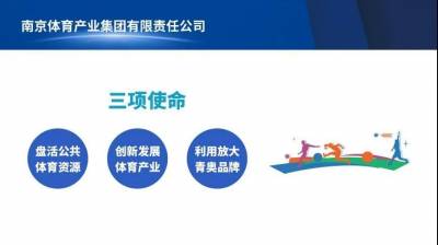南京体育产业集团是南京市委、市政府于2014年组建成立的产业集团,承担着“盘活公共体育资源、创新发展体育产业、利用放大青奥品牌”三项任务,聚焦建设“城市体育经济服务平台”,夯实“赛事表演、全民健身连锁、场馆服务、体育金融、健身休闲”五个板块,通过创新发展体育产业,增量带动集团和全市体育产业发展。党建+体育创新发展|全力以赴谋转型