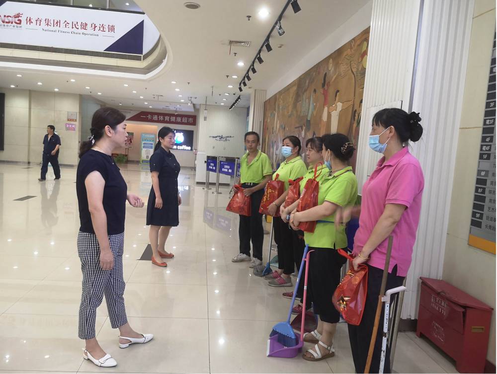 集团总经理、党委副书记程向阳,党委副书记王虹燕,总会计师王璎一行利用一天半时间,先后赴南京国际网球中心、南京全民健身中心、鼓楼体育中心、河西外校游泳馆以及好街坊商业中心全民健身蹦床乐园,检查各场馆安全运营管理工作,同时也向克服酷暑天气、坚守工作岗位的基层一线员工表示感谢和慰问,为他们送上沐浴露等防暑降温物品。集团领导详细询问坚守一线的员工工作情况,叮嘱员工们在高温天气下完成工作任务的同时,也要做好防暑降温工作,确保身体状况良好。