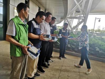 体育集团总经理、党委副书记程向阳,集团党委副书记、工会主席王虹燕,集团总会计师、党委委员王璎慰问龙江网球中心一线人员