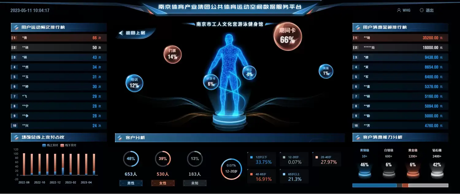 在运动人群数据层面,结合用户运动数据,建立脱敏用户群体画像,为用个人运动趋势作数据化分析,寻求精准营销并发掘运动KOL,也为经营业态的调整提供数据支撑。如对于青少年占比较大的运动空间,建议加大培训资源的投入;对于客单价较高的运动空间,建议增设VIP区,提供更高端优质的服务。